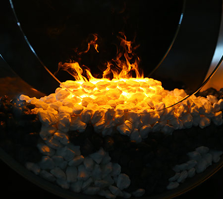 * De haard, met een diameter van 1 meter, is gemaakt van hoogwaardig RVS en prachtig glanzend dik glas.