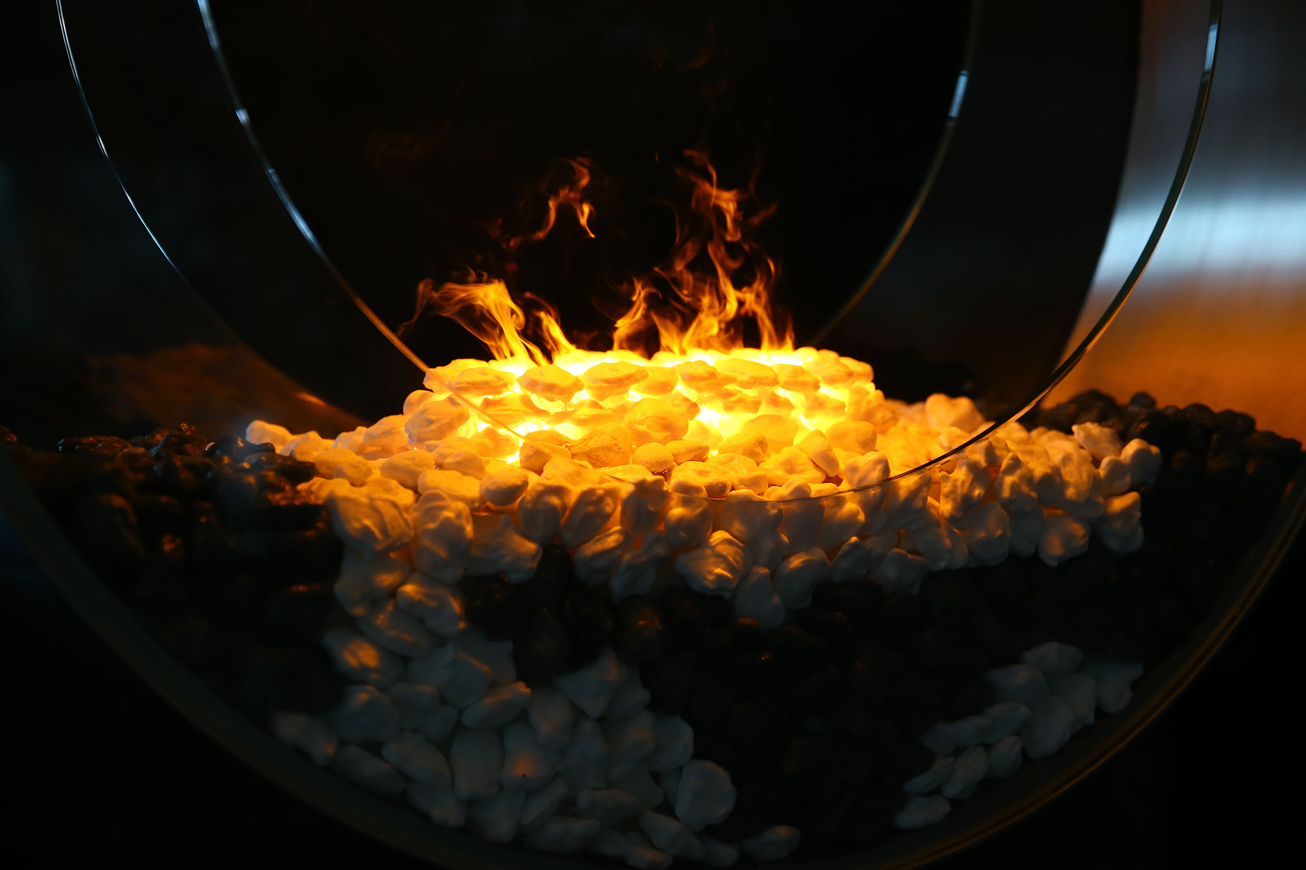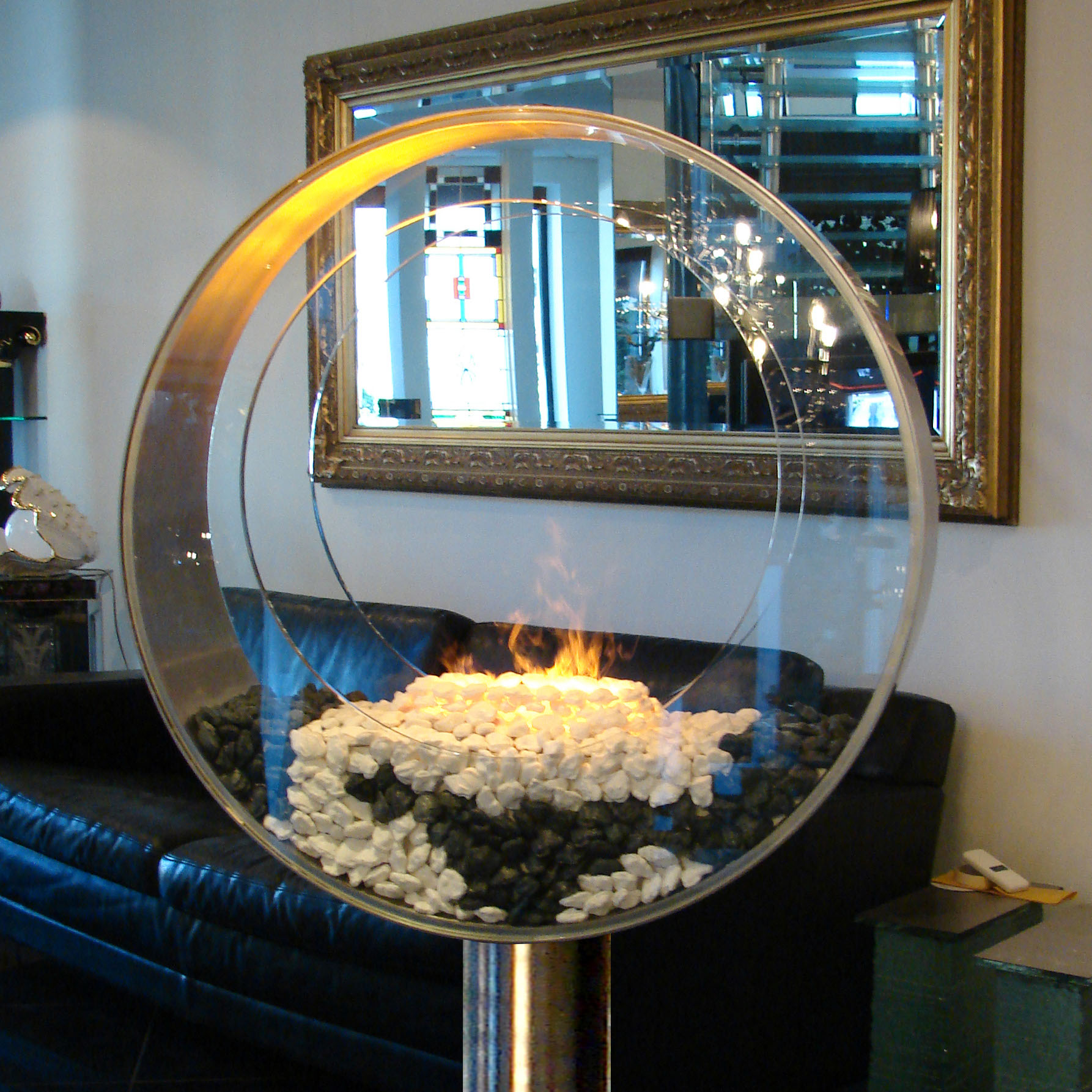* De haard heeft een doorsnede van 1 meter en is gemaakt van hoogwaardig RVS en prachtig glanzend dik glas.